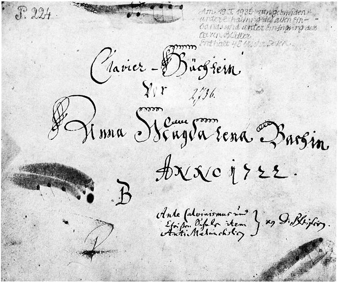 The cover of the first Clavier-Büchlein for Anna Magdalena Bach